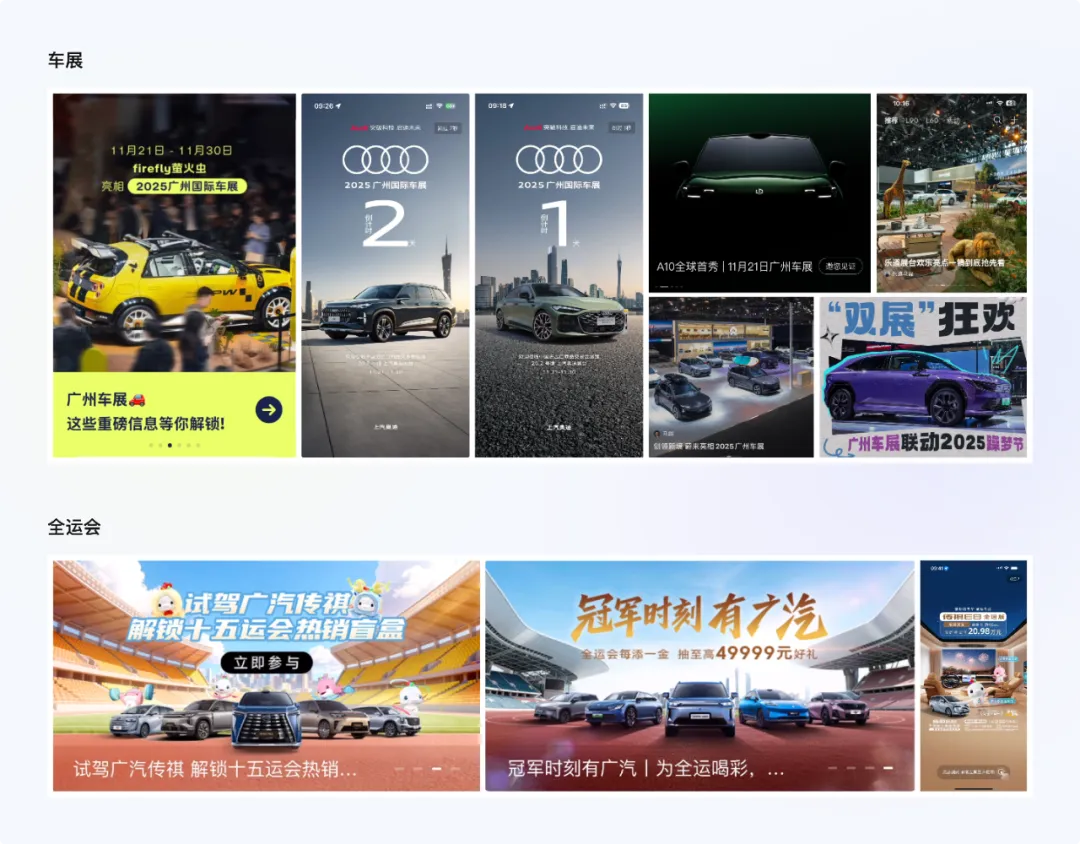 10 家车企围绕广州车展进行线上宣发;广汽传祺作为全运会东道主,利用赛事热点开展互动,将线下关注度转化为线上 APP 活跃度 。