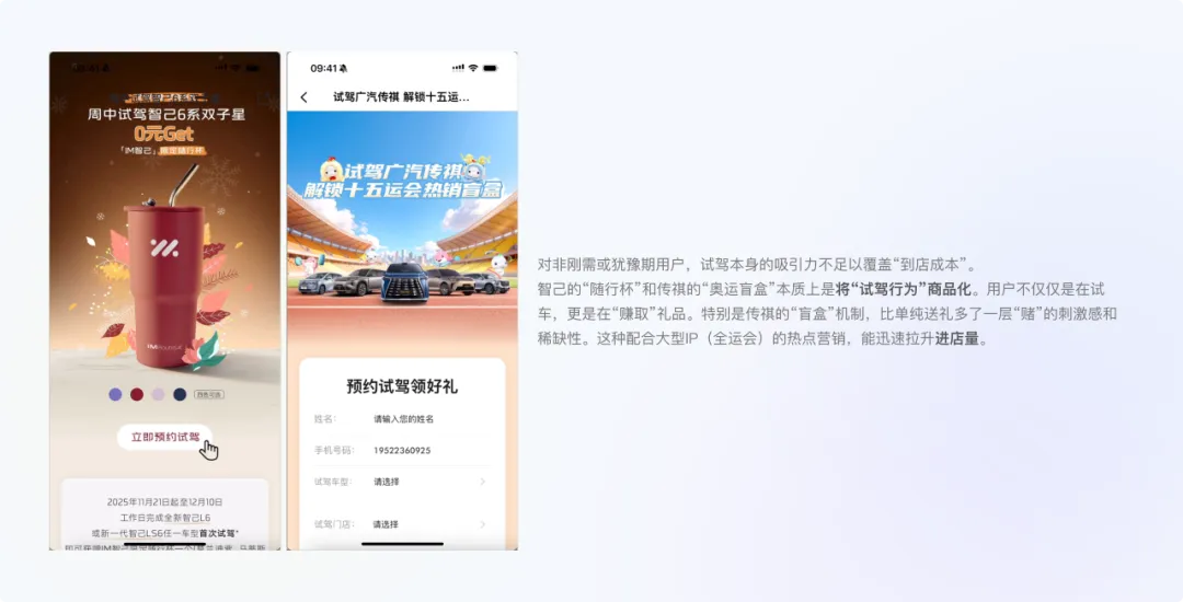 试驾环节从单纯的“体验工具”转变为“促单工具”。虽然 11 月“试驾体验”类的内容占比仅有 5%,但这 5% 却承载着从“关注”到“决策”最关键的信任跃迁,流量成本高企的当下,看看大家都有什么样的等花式手段在同质化的市场里异军突围。
