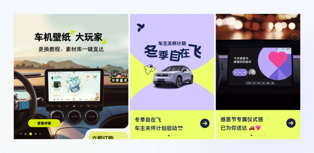 乐道将车放进真实的生活场景里,把车作为画面的一部分而不是唯一的焦点,画面里元素丰富,有活动有氛围,用户看的不是一个摆拍图,看的是一个正在发生的能引起情感共鸣的生活瞬间;用户阅读时只需要顺着画面看,不需要理解复杂的配置,购车权益值不值,活动规则能不能懂。用户的心态实打实的发生了变化。乐道的 Banner 设计不像是在做广告,更像是在做优质内容分享。