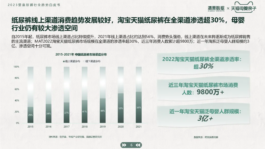 纸尿裤线上渠道消费趋势发展较好,母婴行业仍有较大渗透空间。