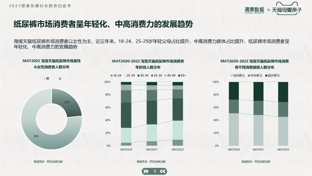 纸尿裤市场消费者呈年轻化、中高消费力的发展趋势。
