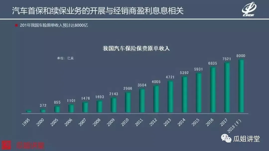 随着保有量的上升,汽车金融里面非常大的一块就是保险的业务。