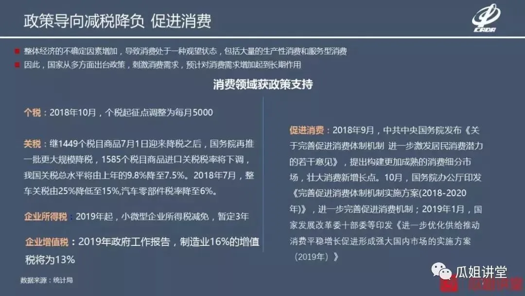 出台了一系列的政策去保增长、促消费,无论是对于个税还是汽车零部件关税的下调,以及我们在今年的政府工作报告里面提到的对制造业以及相关的领域企业实行了普遍的降税。