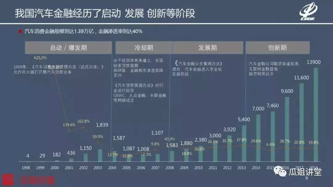 随后我们可以看到,在这样一个冷却期里,我们开始让汽车品牌的金融公司开始在国内发展,大量的金融公司进入到国内。