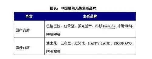婴幼儿服装市场品牌较多,竞争激烈。竞争主要体现在国产品牌和国外品牌之间在不同级别城市,各品牌的表现差异较大,一二级城市主要是国外品牌和国内一线品牌的竞争。