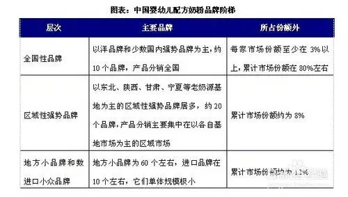 中国婴幼儿配方奶粉所属品牌80个左右,大致形成三个品牌阶梯: