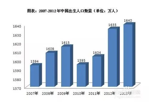 从近几年我国人口出生情况来看,虽然出生率呈下降趋势,但婴儿出生数量有所上升,特别是2010-2013年,出生人口由1595万人上升至1640万人。另外随着2014年各地“单独二胎”的实施,未来几年我国新生儿数量预计会进入一个小高潮。