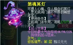 当然,有反制就有增益,除了已频繁露脸的断穹巨剑和三彩琉璃,无底洞最大降低目标50%气血上限的煞魂冥灯让点杀的难度大大降低。龙宫九霄龙锥最高提升70%目标所受伤害也有着异曲同工之妙。