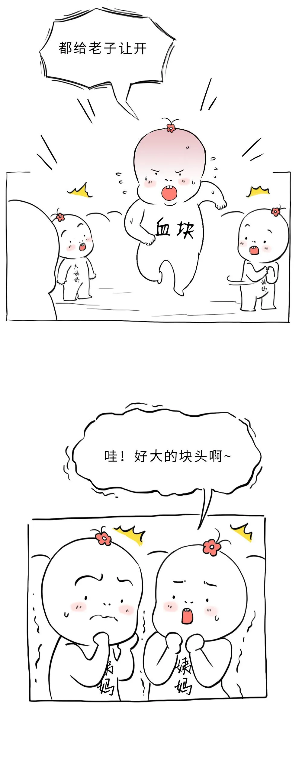 注:大姨妈期间打喷嚏时,腹部会突然用力,导致腹压力骤然增加,因此会出现经血喷涌而出的情况。