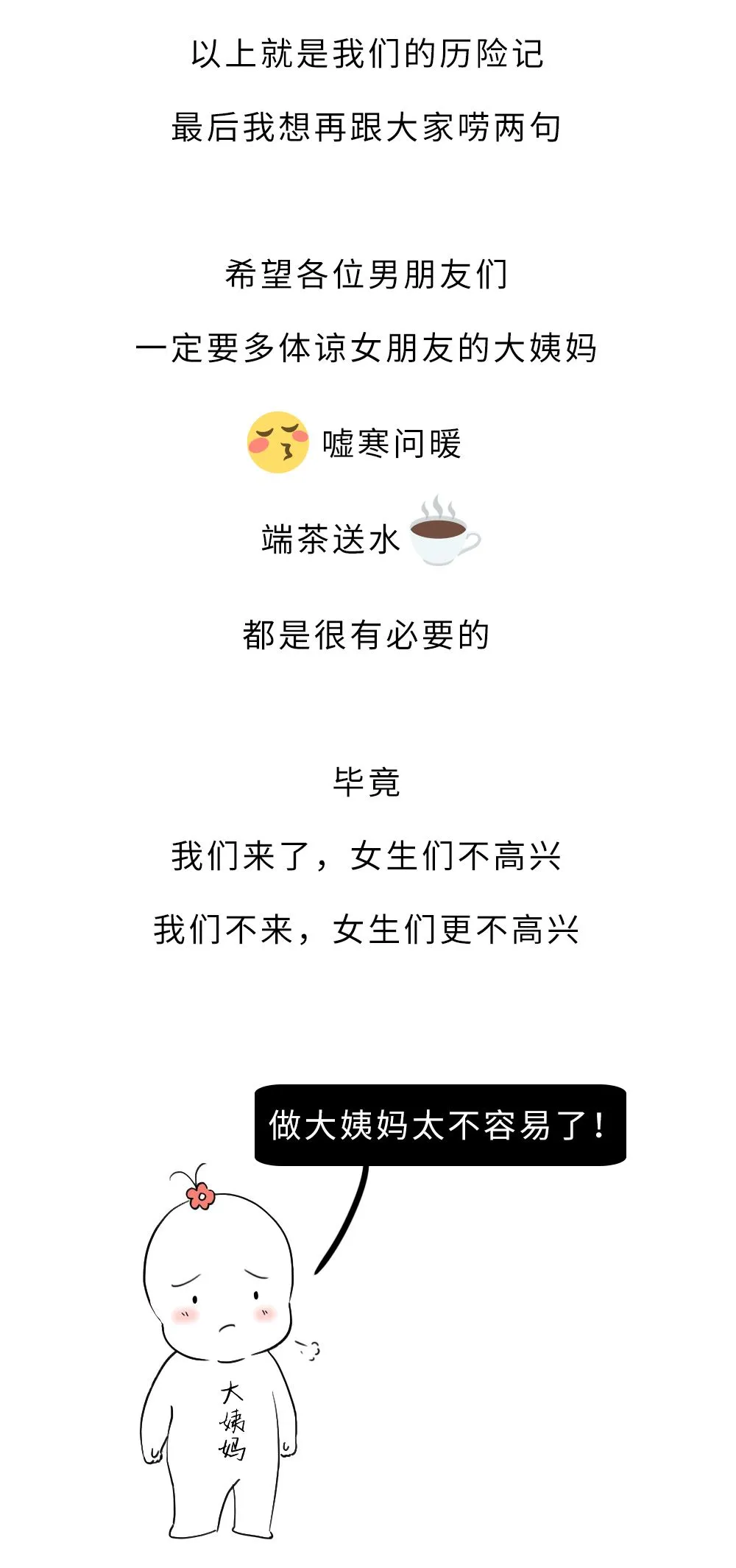 注:女生的大姨妈具有周期性,但因为体内激素变化等原因,可能会延迟或推后几天。这都是正常现象!