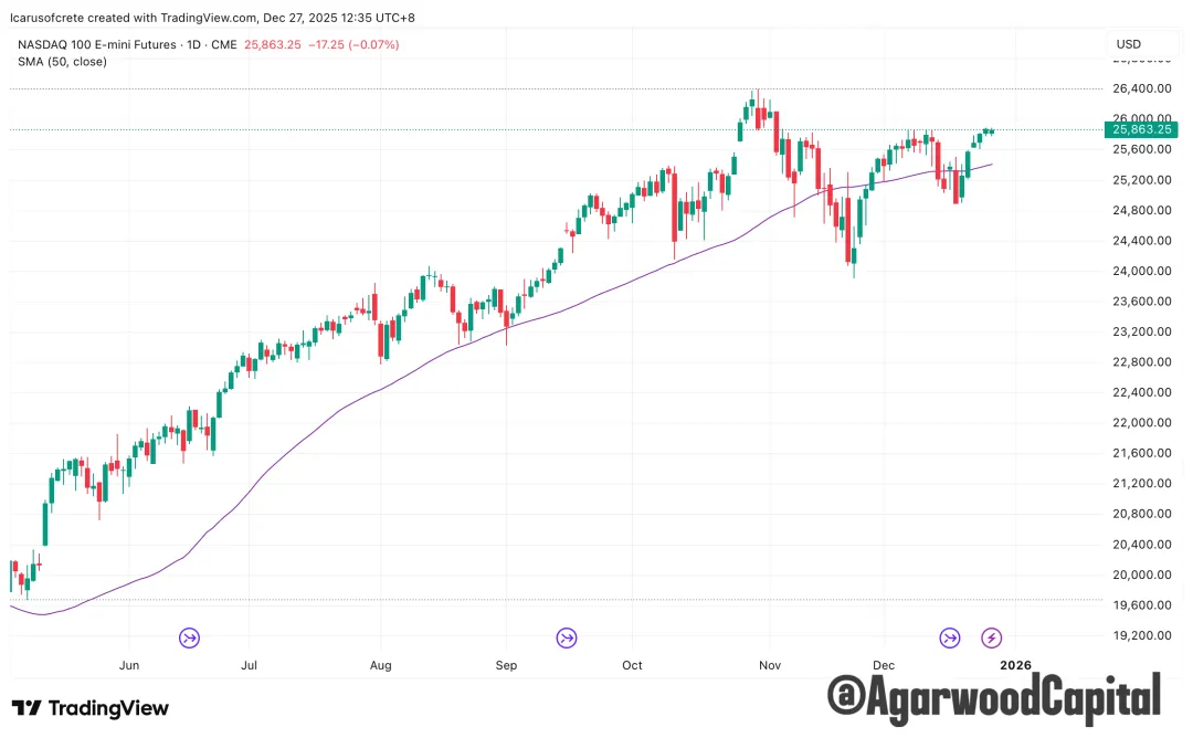 本週公布的GDP數據大幅好與預期,美股反映積極,說明當前的宏觀敘事是‘軟著陸’,預計在1月9號非農數據公布前,美股大概率會延續當前的聖誕行情。