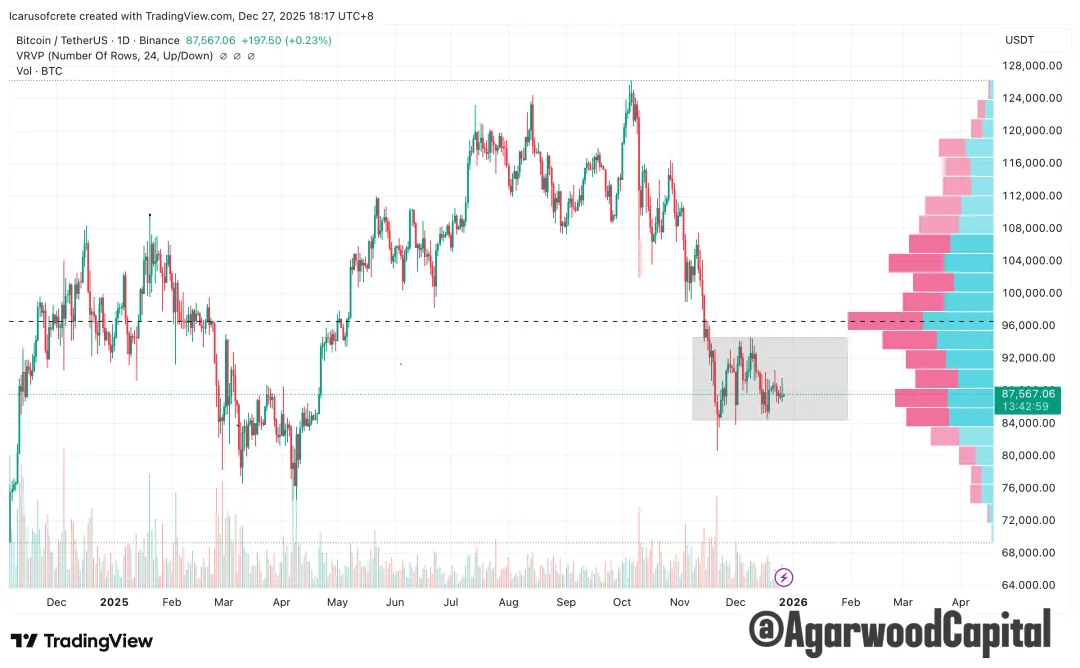中期看,BTC仍處於熊市中,短期則處於94K-85K的震盪區間,上破有望測試100K,下破則看80K的關鍵支撐。