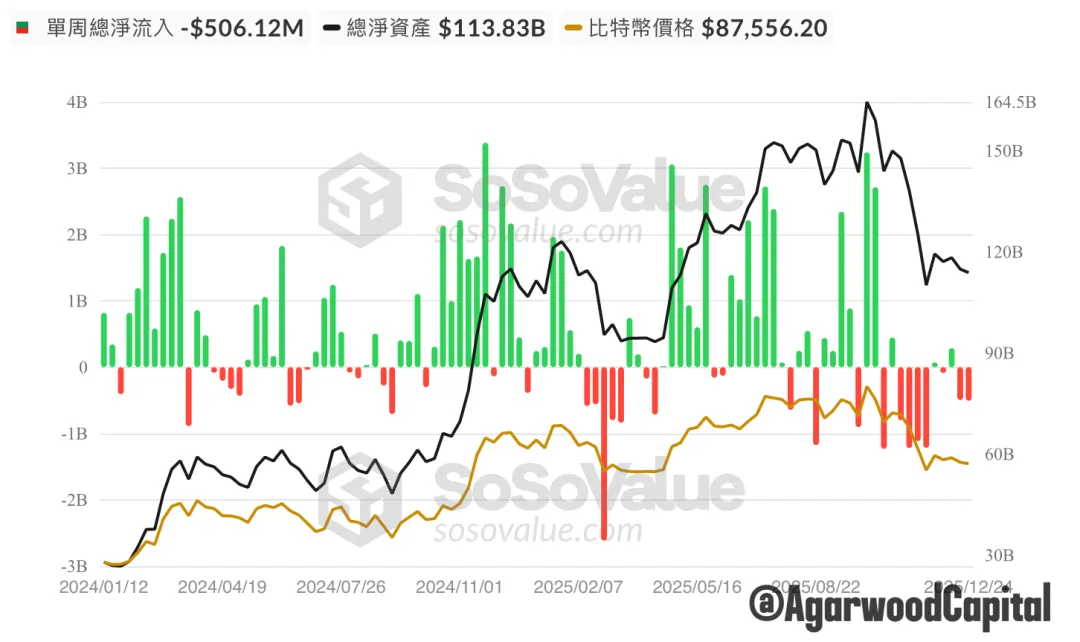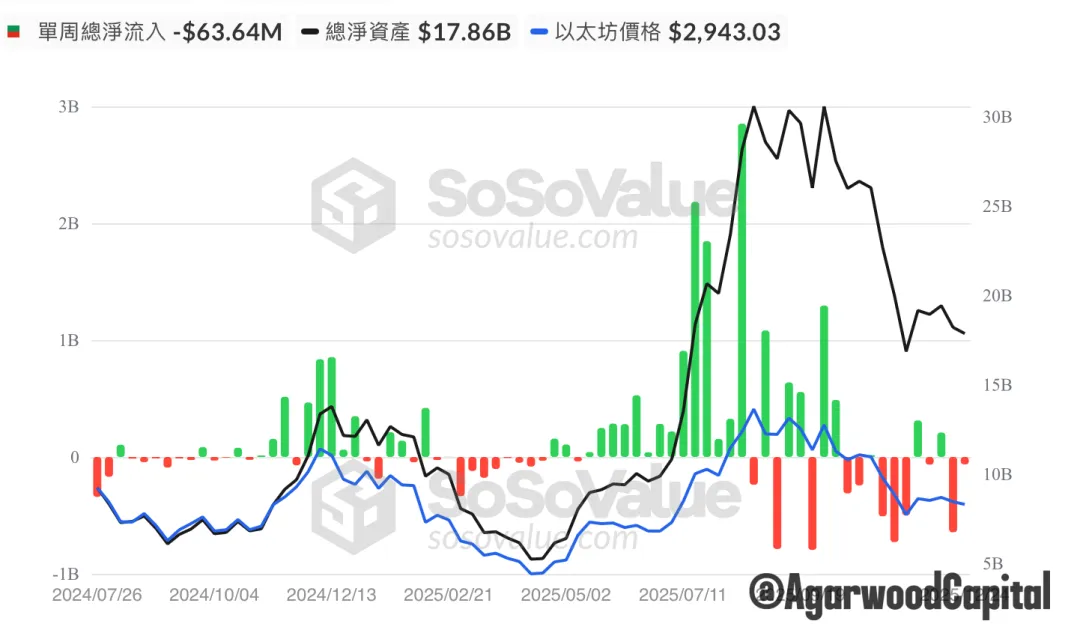 處於負值,呼應著ETF的淨流出,代表美國投資者情緒低迷。