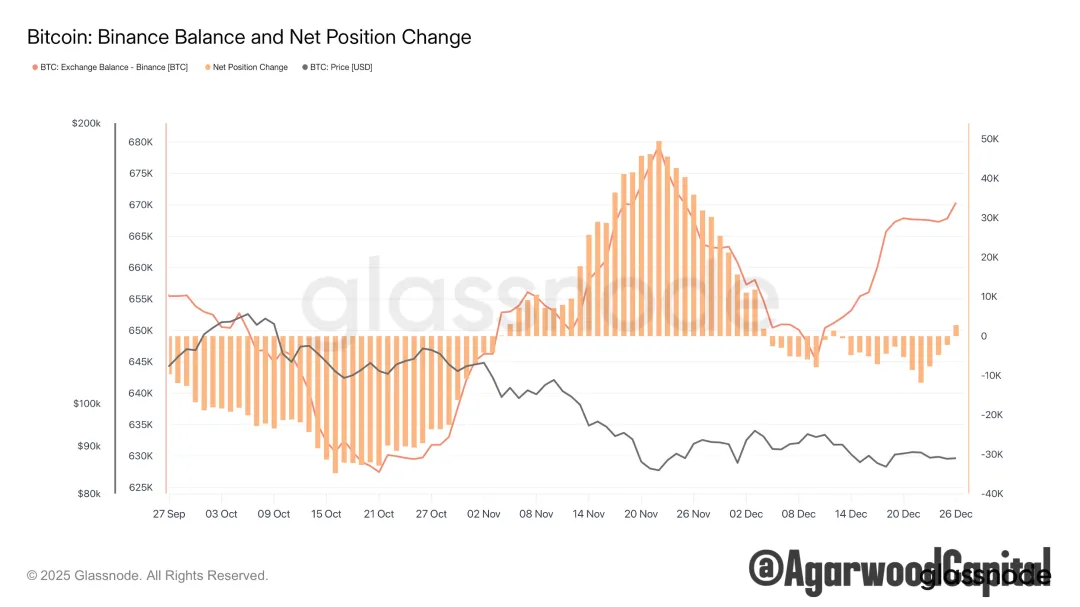 本輪跌勢,幣安是交易所場內賣盤主場,價格與幣安的餘額高度負相關。