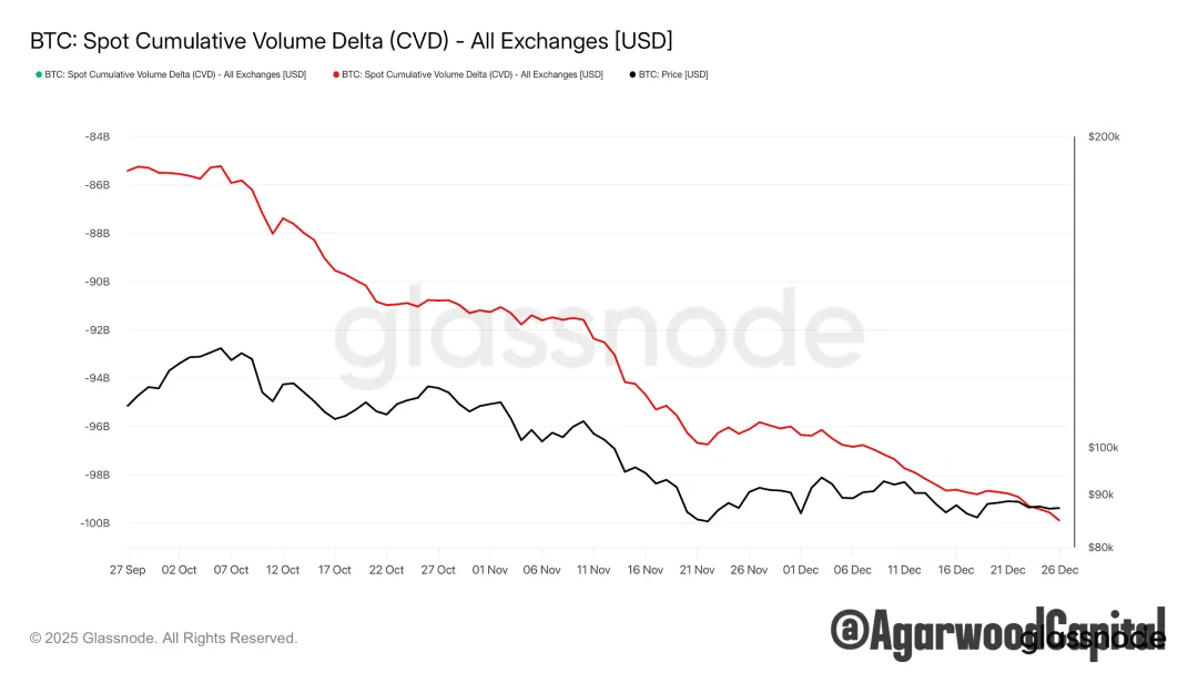 CVD與價格牛背離,說明有主動賣盤被吸收。