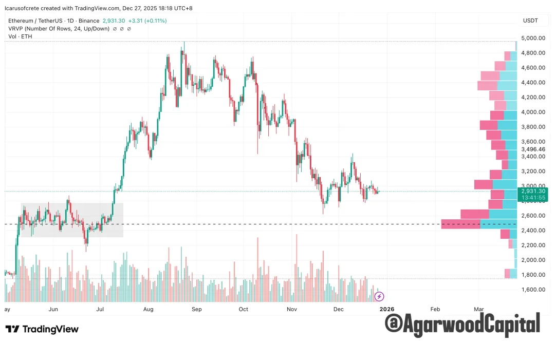 1、ETH價量結構:區間震盪