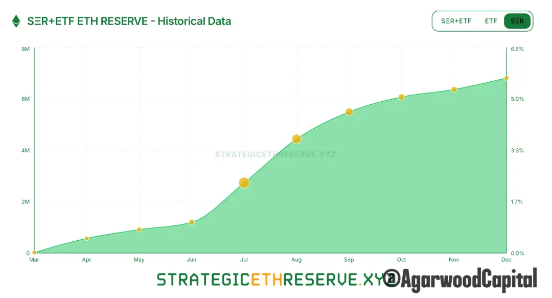 ETH財庫占供應從上週的5.55%到本週的5.63%,主要是Bitmine在購買。