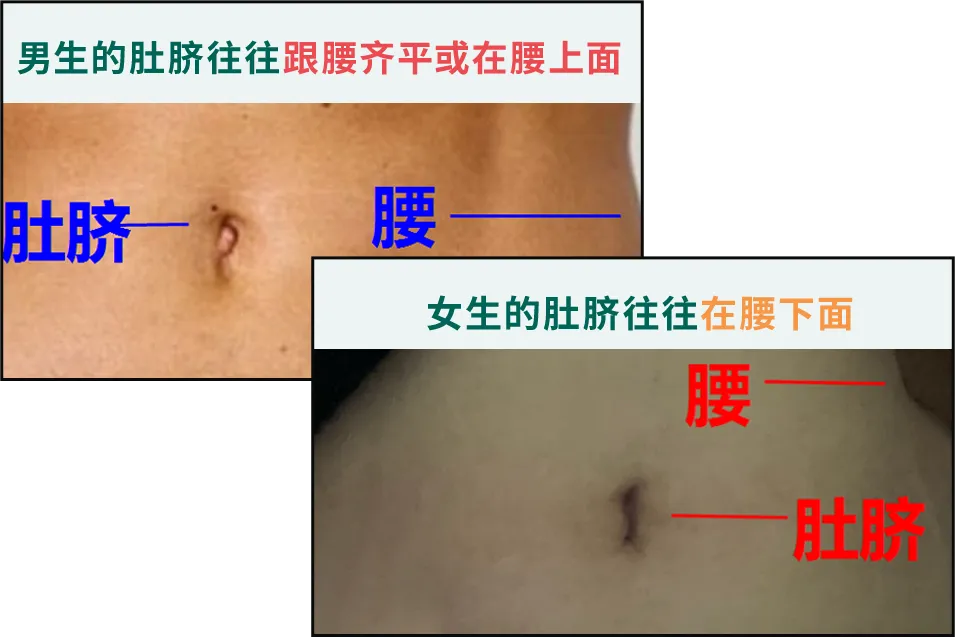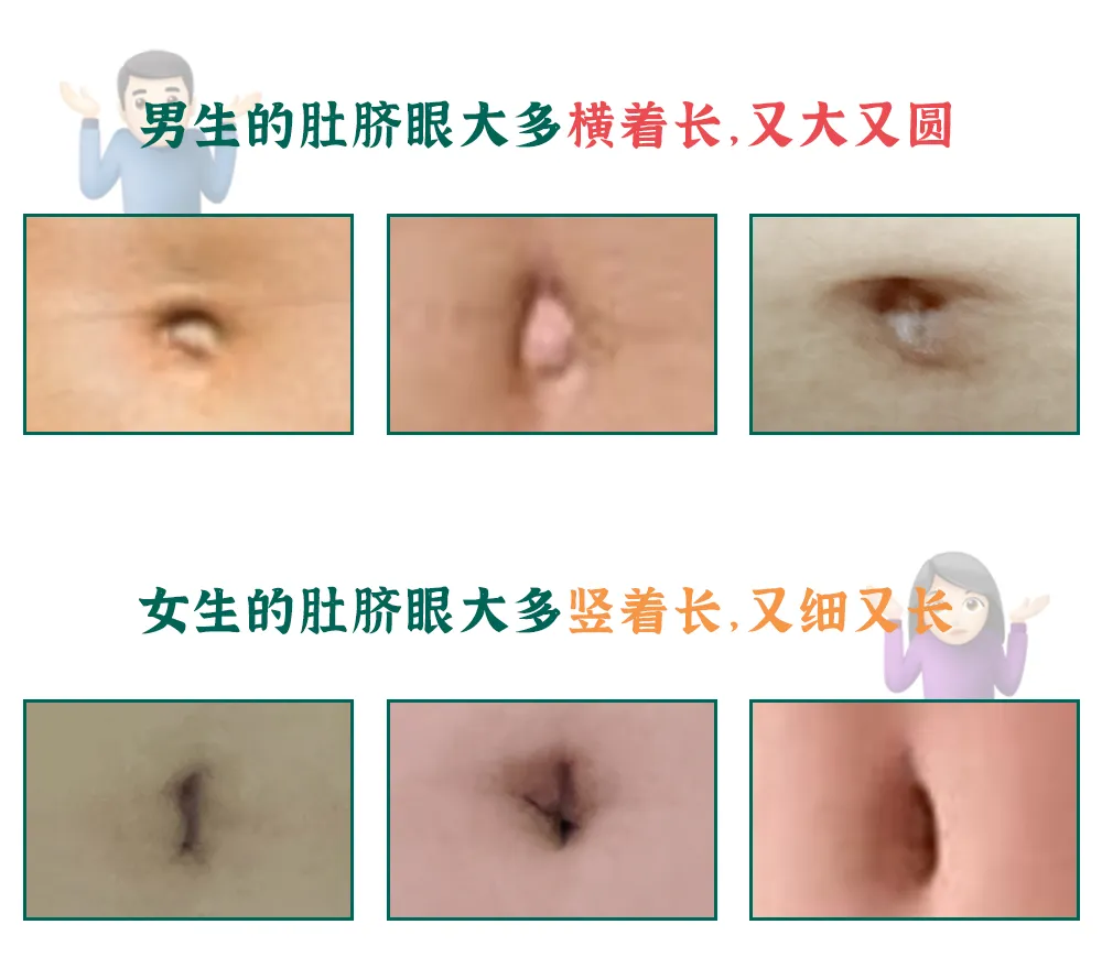 这不就呼应上了,女生肚脐天生就比男生肚脐更容易长成竖着的形状!这也是为什么,男生裤子几乎都在肚脐眼下面。