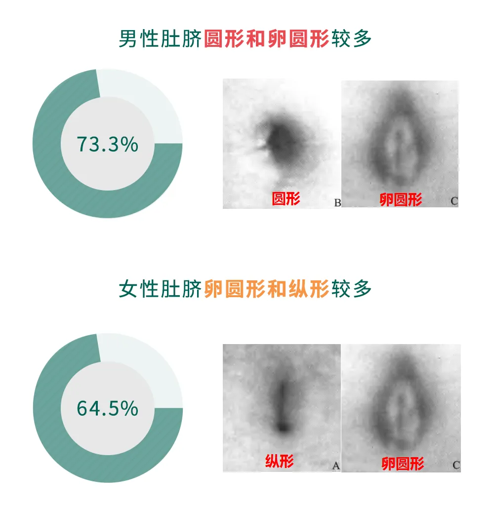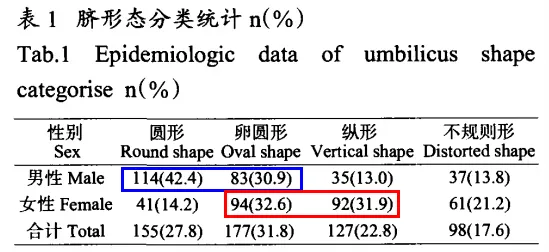 《脐形态学调查》针对557名汉族人(其中男性269人,女性288人)调查发现: