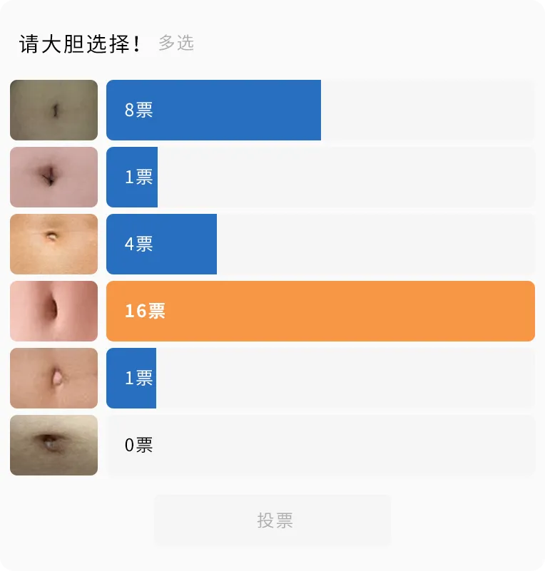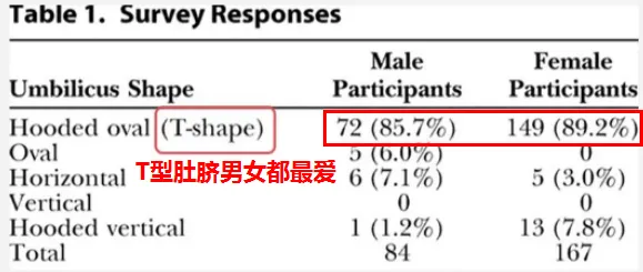 我又翻到关于肚脐的美学调查论文,发现大多数人最喜欢的肚脐形状,也正是“T型”这种竖着的肚脐!