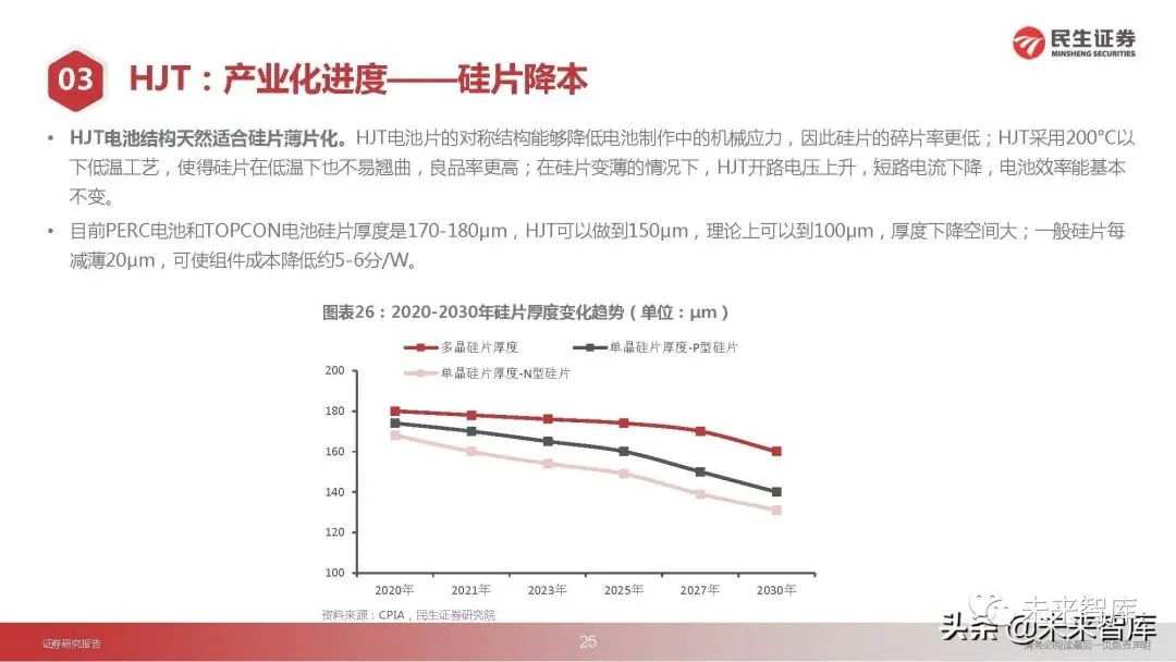 良率较低的原因:1)加工工艺步骤较多、且目前技术路线并不统一,多条技术路线并行。2)高温工艺导致翘曲、碎片等问题较为突 出,LP隧穿氧化的均匀性导致暗片、脏污的情况出现也降低了良率表现。3)隧穿氧化工艺过程中出现卡槽印等。以上问题有望随着产 业化加速逐步改善。(报告来源:未来智库)