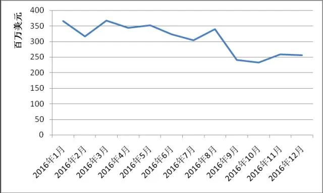 图表11 2016年光伏组件出口金额持续下降