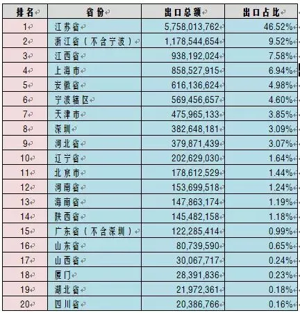 图表13 江苏省仍占我国组件出口半壁江山