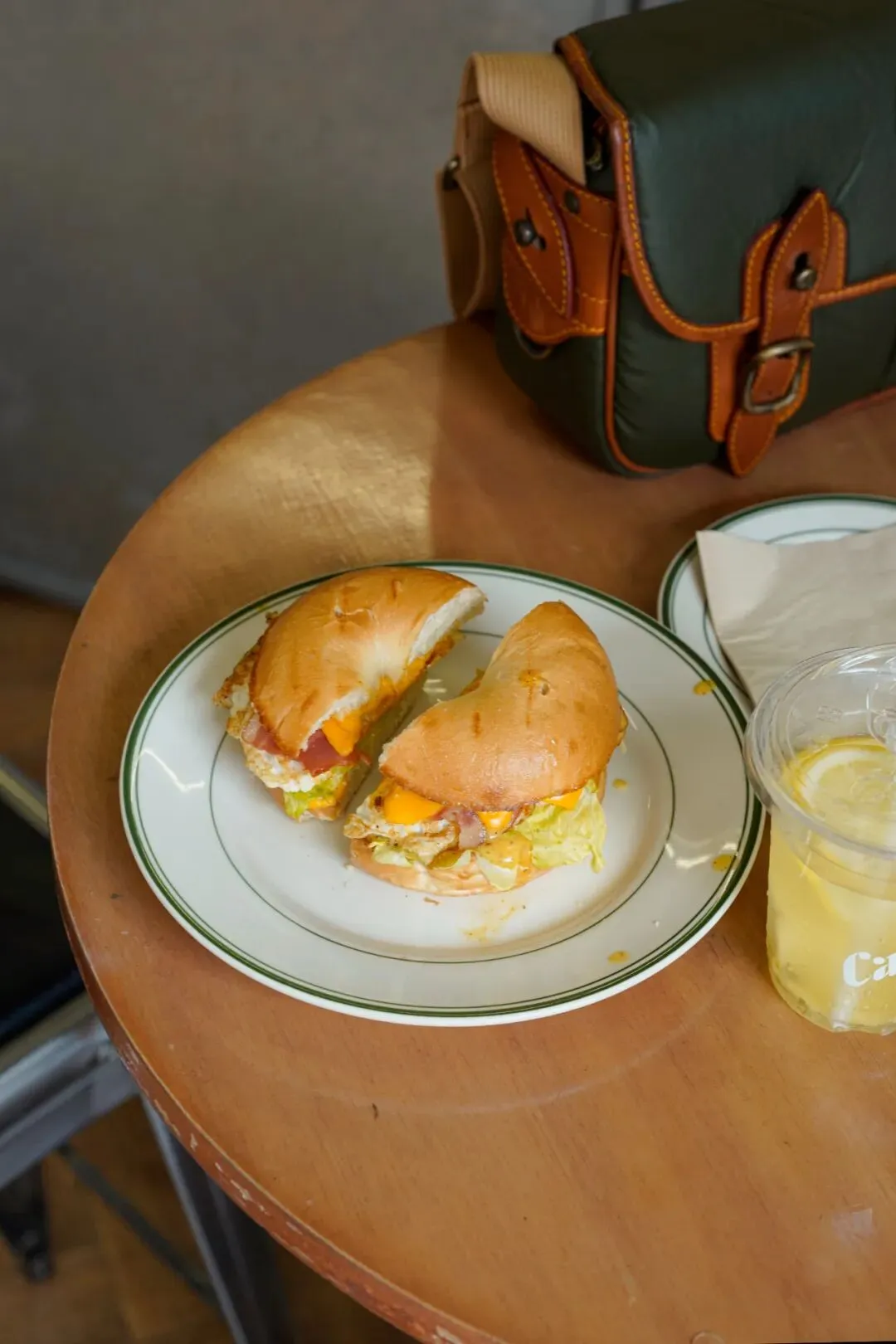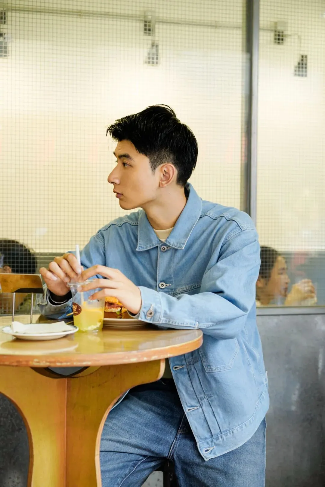 从领口、缝制处有褶皱细节,到微微泛白的「水洗痕迹」,ZICAI 向我们展示了丹宁夹克的服装细节,也介绍了今天 Brunch 的用餐选择——培根汉堡和柠檬苏打水,也是因为「经典的同时,清爽让人放松」。