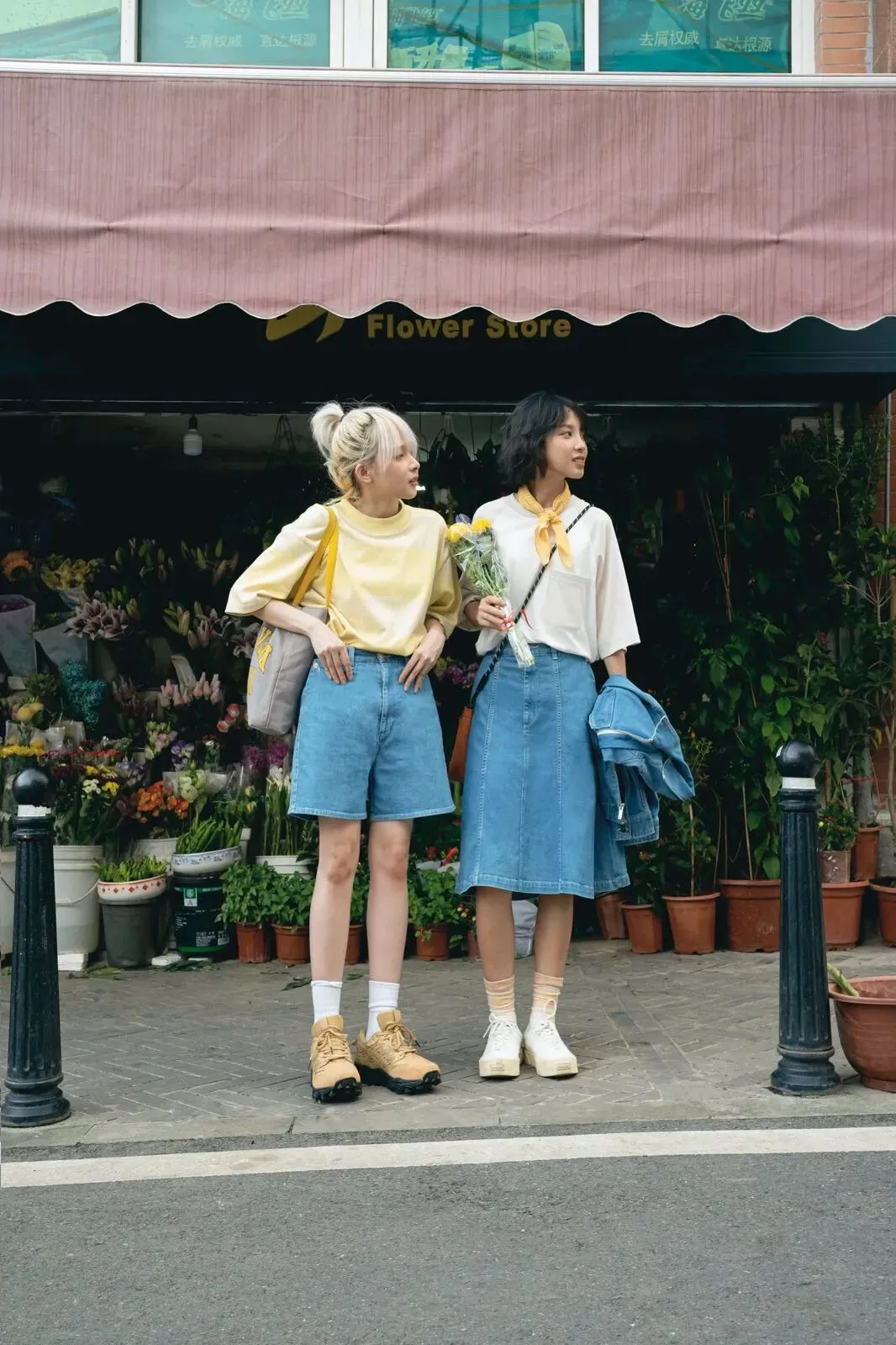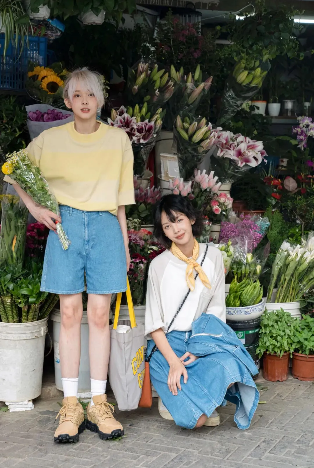 穿着黄色短袖,和柔软亲肤、行走一天也十分轻松的 LEVI’S® 日本制牛仔短裤,嘉嘉没有说太多话语,在花店里选择了一束与身上色调相近的花簇,捧在手中和同伴步行离开。而当这簇小小黄花被嘉嘉插入瓶中,又会去点缀谁的梦呢?