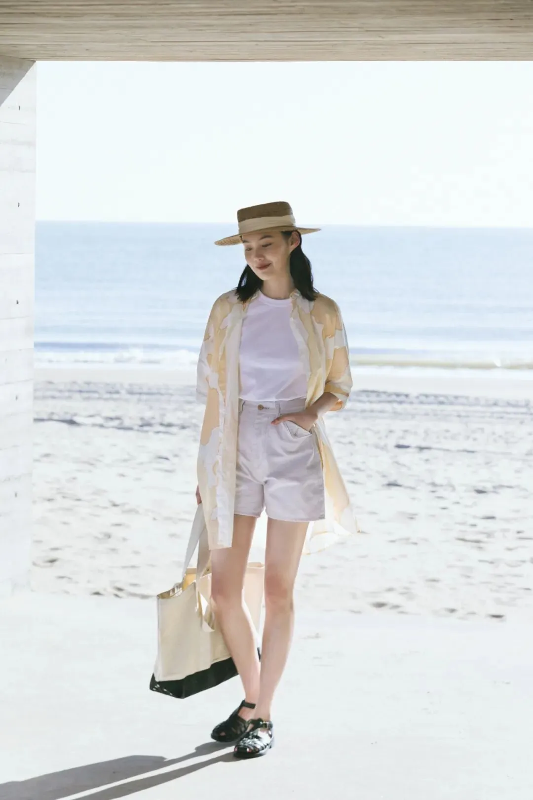 午后沿着街道,走进一家日式家居店,自然原木和真藤材质制作的「昌迪加尔藤椅」,保留颗粒感的陶器摆件,在暖光照射下,有着简单质朴的日式素雅,和尽显匠心的细节。自由模特,也是品牌 PR 的弯弯已在这里等待我们多时。