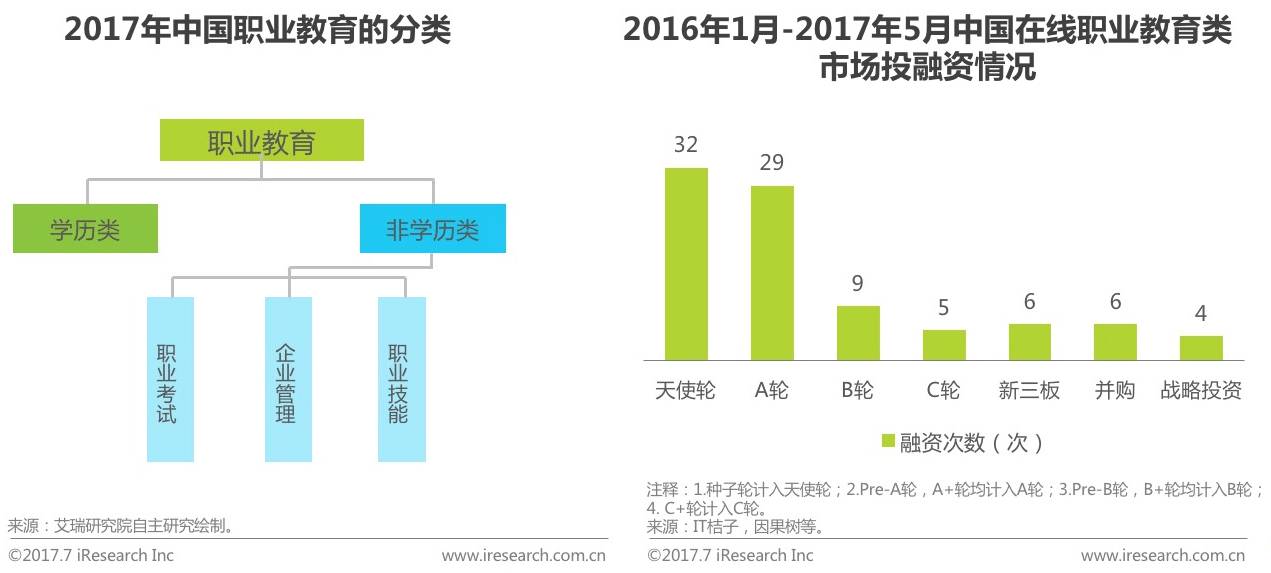 截止至2017年6月1日,在线职业教育获91次融资,市场表现活跃。资本和创业者青睐在线职业教育可能主要是因为职业教育人群具有体量大、自主性强、付费意识高的特点,而行业内可以从纵深领域切入而创造新的蓝海,市场盈利可期。