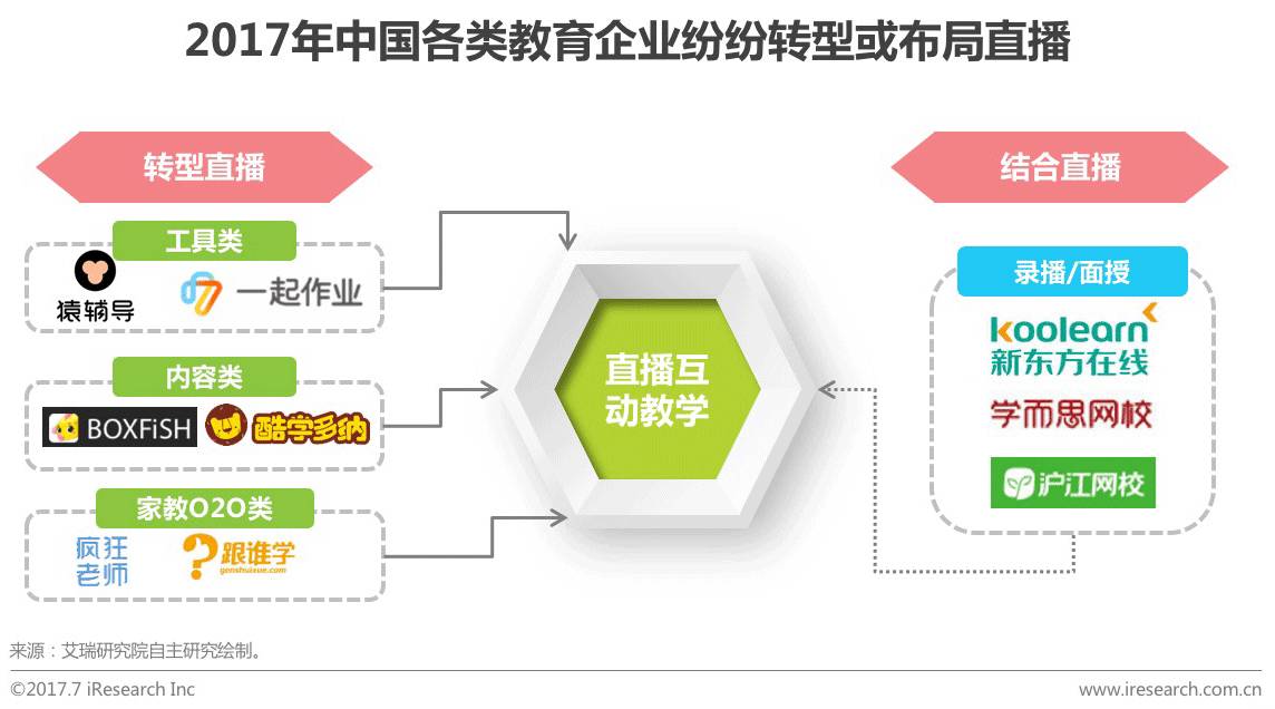 2、现阶段各在线教育企业频繁转型或布局直播,新兴创业公司逐渐趋于向综合性服务发展。