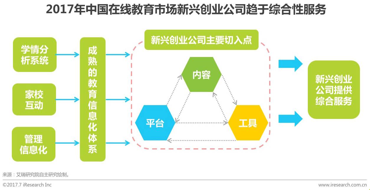 技术创新与成熟推动在线教育的发展。学情分析系统、家校互动、管理信息化等技术不断成熟,使得整个在线教育的底层技术相对成熟,这就为新兴创业者提供了良好的创业氛围。现阶段,在线教育创业主要集中在内容、平台和工具三个维度。在线教育教学模式的不断丰富则对教学内容有了更多的要求,教学内容需要更加适配于大部分教师所使用的教学模式;教学平台想要吸引更多的流量,不仅需要有良好的教学体验作为支撑,还需要有优秀的老师以及优质的教学内容;而工具类产品则体现在检验学习效果和提高学习效率等方面。教育是一项特殊的服务,只有提供更加全面的服务才能吸引更多的人群聚集,创业公司向综合性服务发展也是大势所趋。
