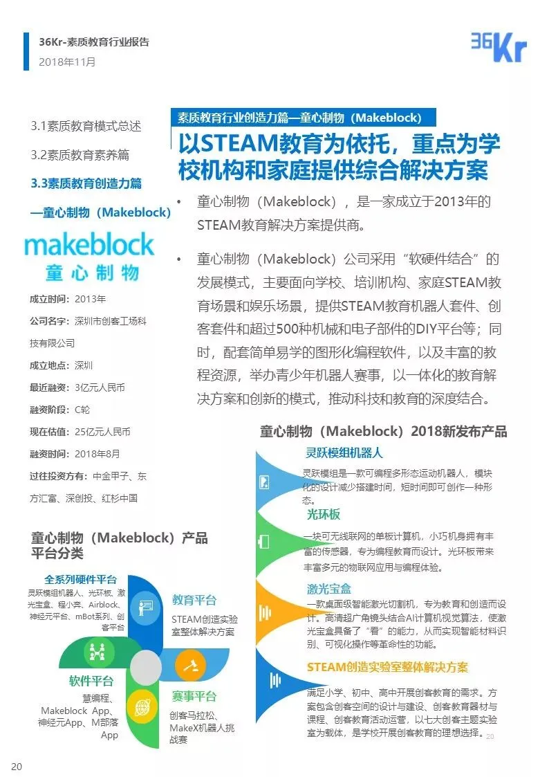 这些最新融资的企业里面,创新型企业居多,主要以编程教育最为火爆,单笔和总融资额都比较大。