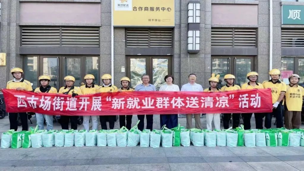 为进一步营造关心关爱新就业群体的氛围,为外卖小哥送上丝丝清凉,近日,济南市槐荫区外卖行业党委积极协助西市场街道开展“关爱新就业群体送清凉”活动,为奋战在户外一线的外卖小哥送上消暑用品,带去了党和政府的关怀和温暖。西市场街道民生保障服务中心主任庞焱、西市场街道办事处工会主席徐步、槐荫区外卖行业党委专职委员赵卫东及部分外卖小哥代表参加了本次活动。