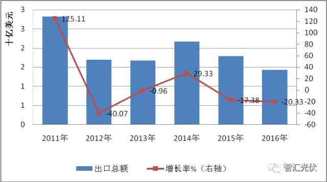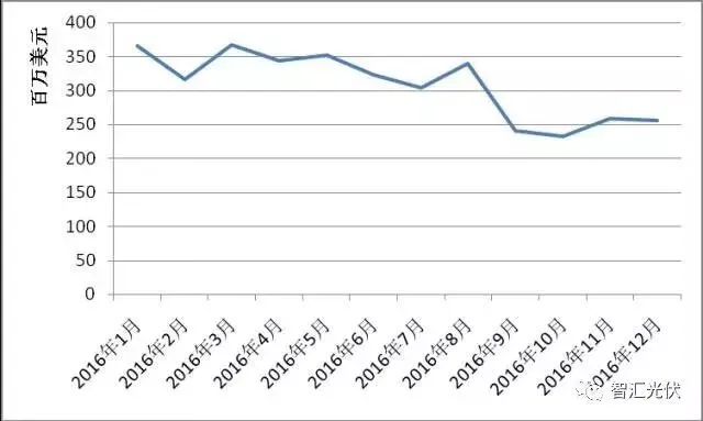图表 4 中国光伏组件2016年对美出口下滑20.33%