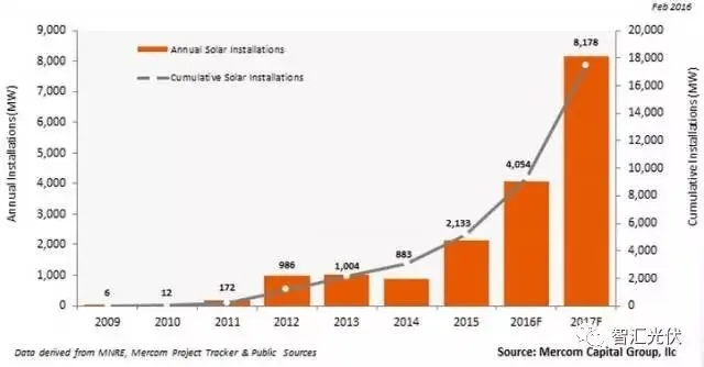 展望2017年,印度目前有14.2GW的太阳能发电项目正在开发中,6.3GW的太阳能发电正在招标中。我们初步预计印度2017年太阳能发电量将增加8.7GW,包括1.1GW的屋顶太阳能板发电计划。