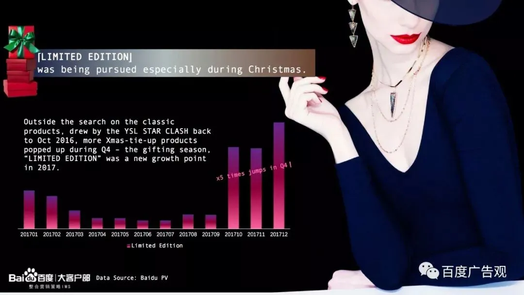 在圣诞节氛围的影响下,高逼格、高质感的限量彩妆产品紧紧抓住了消费者的眼球。成为了在买买买的季节中新的增长点。