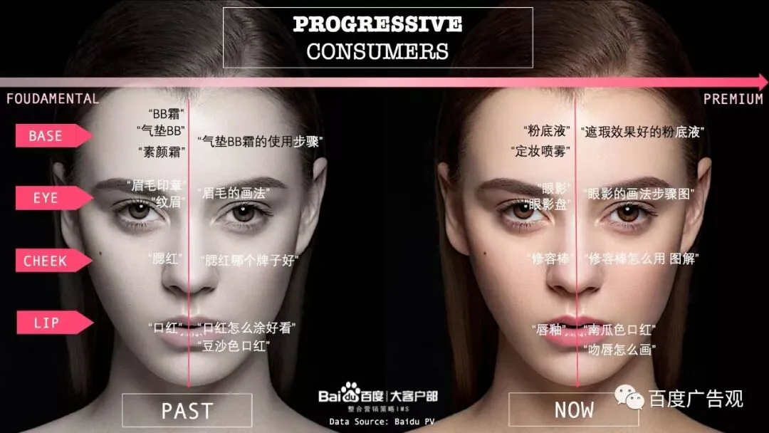如果大家是彩妆行业报告的忠实读者,我们不难勾勒出过去消费者的搜索画像:
