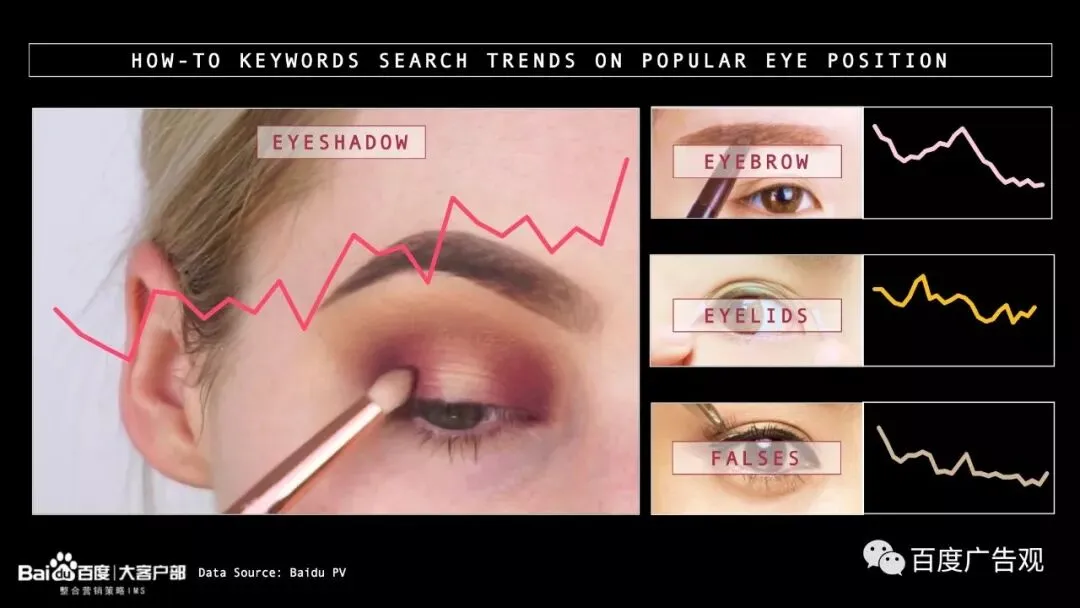 从搜索词的变化中,我们已经感受到了消费者对彩妆产品的关注变化和对彩妆技巧的提升意识。为了让这个感受更强烈一点,接下来我们按彩妆部位来和大家好好唠唠。