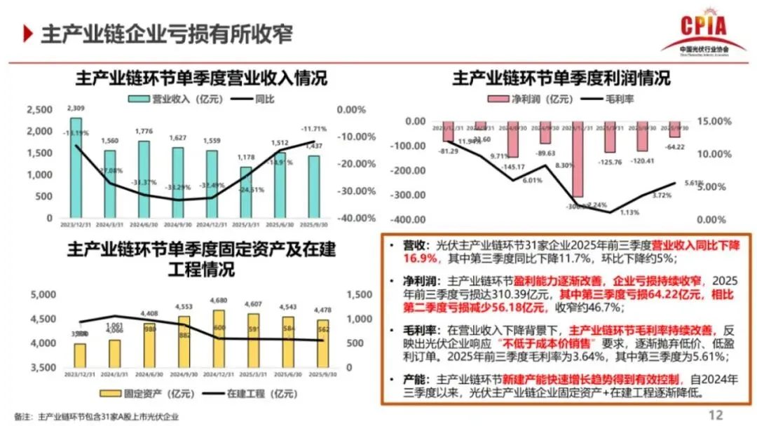 2025年,我国光伏行业在格局重塑与理念转型中迈向高质量发展新阶段。制造端各环节产量有增有降,增速显著放缓,而应用端新增装机再创新高,呈现“脉冲式”分布特征。进出口市场方面,产品出口量回暖但出口额连续两年同比下降,新兴市场成为增长亮点。随着相关政策落地与行业自律推进,“内卷式”竞争得到整治,产业链价格逐步修复,企业亏损持续收窄。行业发展理念从规模扩张转向质量提升,政策体系不断完善,推动光伏全面入市、集成融合发展。当前行业处于转型关键期,需依托技术创新、绿色转型与有序竞争,挖掘国内外多元需求潜力,筑牢高质量发展根基。