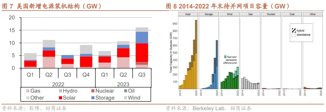 从待并网数据来看,参考LBL统计(https://emp.lbl.gov/queues),截至2022年底美国待并网风光储项目容量合计逾2TW,其中光伏超900GW。