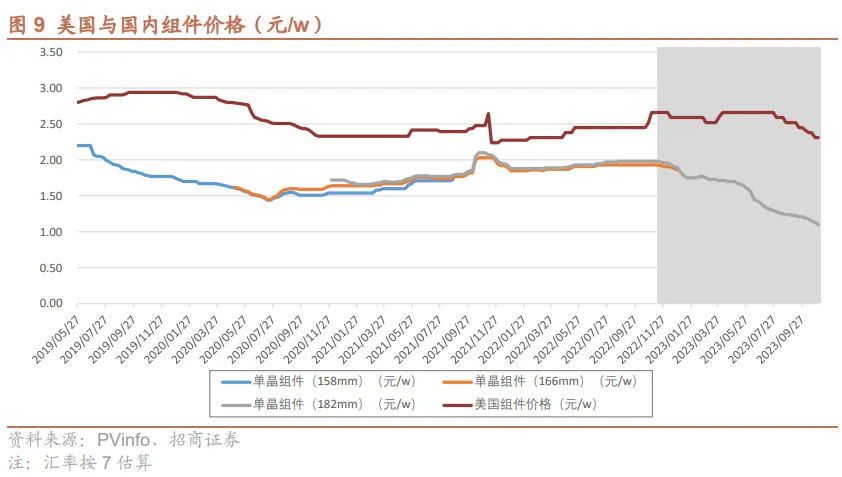 2、201关税:2018年开始,针对全球(少数发展中国家豁免)出口向美国的电池及组件产品实施。2022年2月获延期,目前税率为14.5%,逐年下降0.25%至2026年2月到期。电池片每年5GW免税额;双面双玻组件豁免;