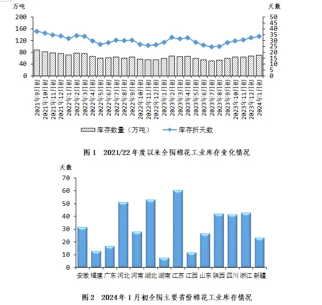 一、1月初全国棉花工业库存约69.8万吨