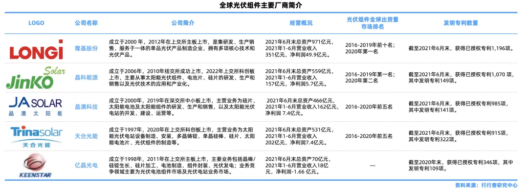 上述五家企业在经营情况、市场地位、技术实力、衡量核心竞争力的关键业务数据、指标等方面各具优势。光伏电池:以晶硅电池为主