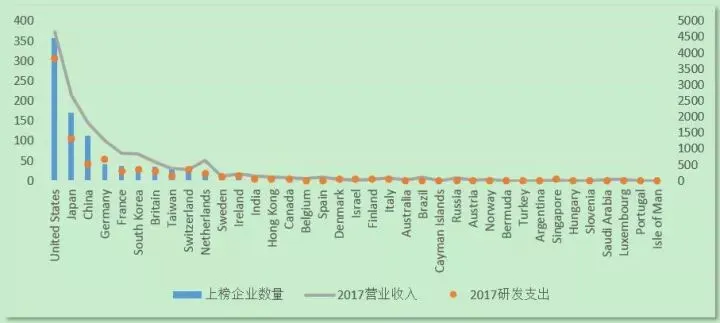 日前,普华永道思略特发布了2017年全球创新1000强报告,该报告对全球创新研发投入最高的1 000家上市公司进行了研究,样本公司分布在近40个国家(地区),行业跨度近20个。全球创新1000强企业,是各经济体最为活跃的企业,其绩效表现,可以作为国家宏观经济走势,产业发展前景预测等领域的重要参考指标。