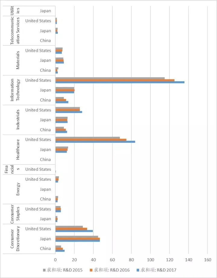 资料来源:根据普华永道思略特2017全球创新1000强报告相关数据计算