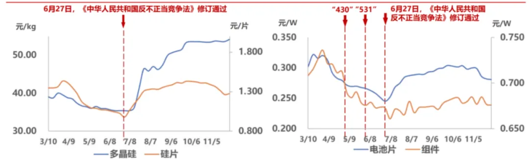 价格波动与政策干预:供应链价格受分布式新政、《反不正当竞争法》等影响,上半年剧烈波动,三季度后企稳。