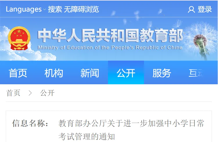 12月17日,教育部网站发布了《教育部办公厅关于进一步加强中小学日常考试管理的通知》(教基厅〔2025〕3号),通知全文如下: