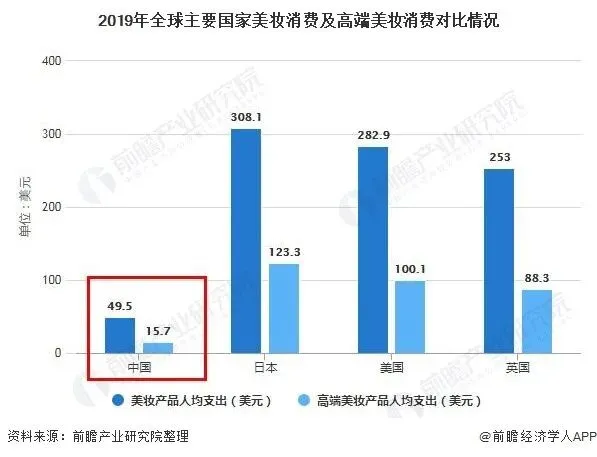 随着我国人均可支配收入的增长及个人消费水平的提升,中国消费升级的长期趋势正带动着中国人美妆支出的增加。然而,目前我国人均美妆产品的支出仍低于其他成熟市场。
